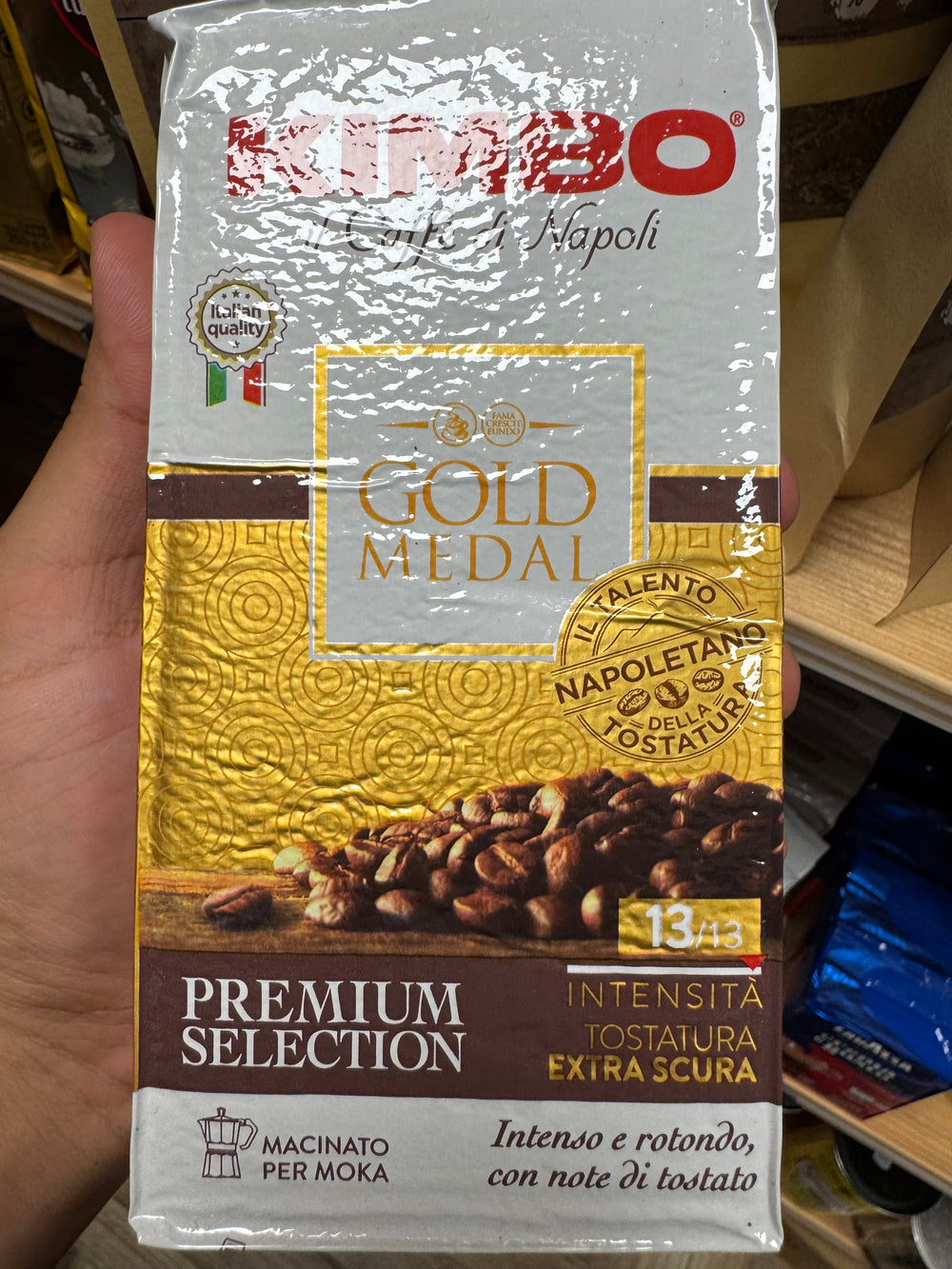 Découvrez le Kimbo il caffè di Napoli Gold Medal 250g, un café primé avec un mélange riche et corsé de grains arabica et robusta. Profitez d'une tasse pleine de saveurs intenses et de notes de cacao, d'amande et de noisette. Un café d'expert pour les connaisseurs.