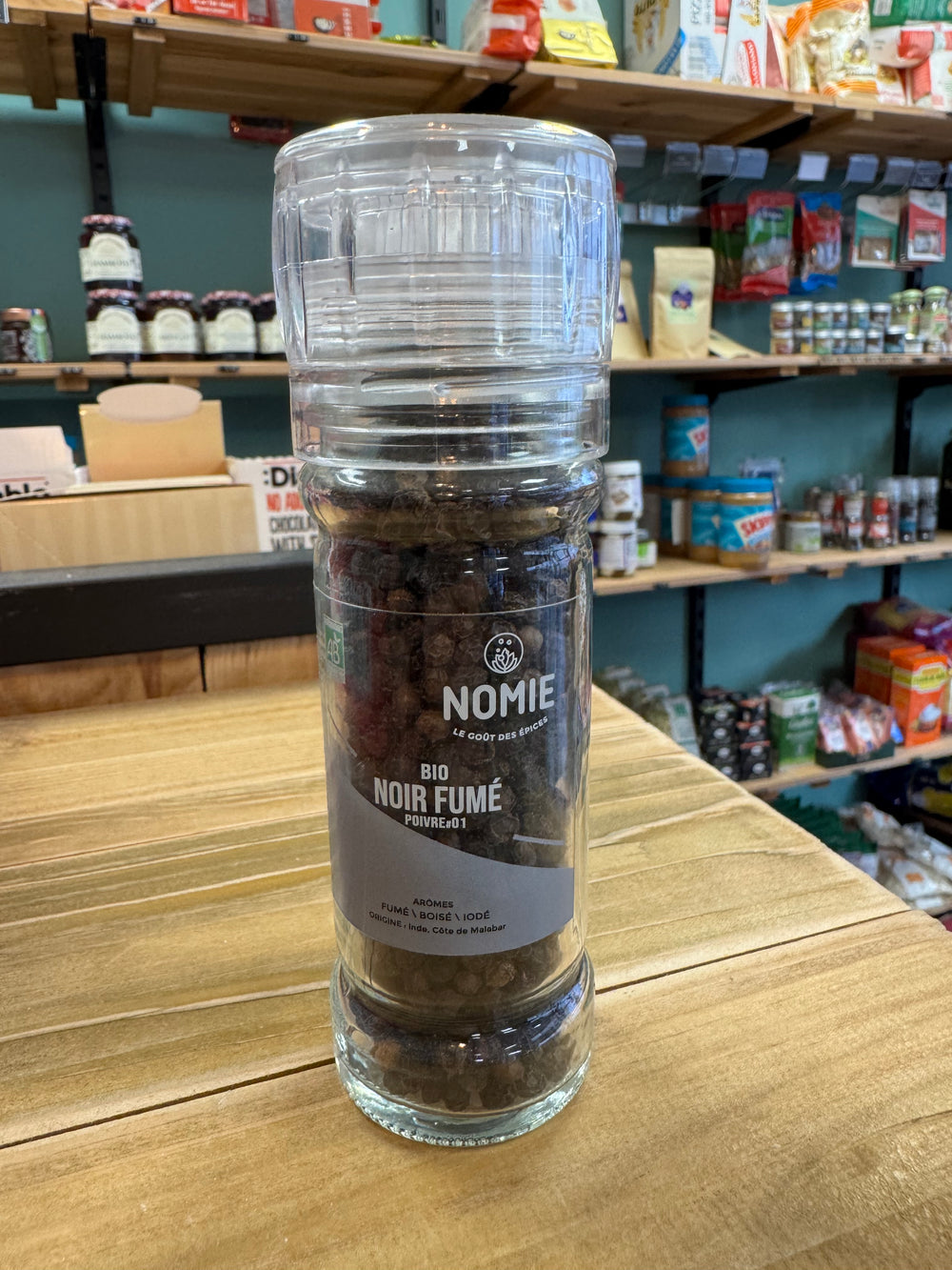 Découvrez l'Epice Nomie - Poivre Noir Fumé Bio, avec son arôme boisée et iodé provenant d'Inde et de la côte de Malabar. Ce poivre noir fumé est 100% bio et évoque des saveurs uniques pour une expérience culinaire exceptionnelle. Un produit de qualité, idéal pour vos plats favoris.