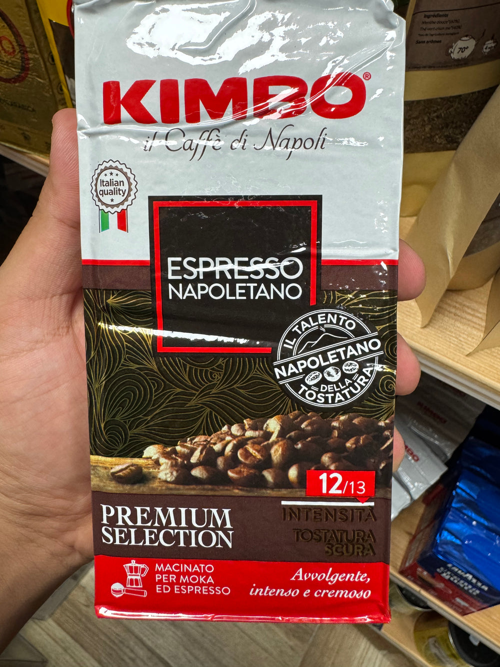 Dégustez le goût authentique de Naples avec Kimbo il caffè di Napoli Expresso Napoletano 250g. Ce café expresso est reconnu pour sa qualité supérieure et son arôme riche qui vous transportera directement en Italie. Garanti 100% arabica et torréfié à la perfection, offrez-vous une tasse de plaisir intense à chaque fois.